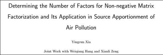和岭南统计科学研究中心的邀请,电子科技大学及新加坡国立大学夏应存教授在行政东前座412作了题为“Determining the Number of Factors for Non-negative Matrix Factorization and Its Application in Source Apportionment of Air Pollution”的讲座——暨“羊城讲坛”第三十八讲,旨在进一步提高年轻学者及研究生对研究的理解。此次讲座由崔霞副院长主持,相关专业的师生参加了此次讲座。该报告主要研究通过二次交叉验证来进行非负矩阵的分解,通过非负矩阵的分解来寻找空气污染的源头所在。并列举了美国环保署PMF 5.0与新加坡空气污染两个例子。