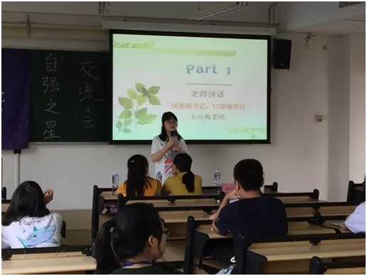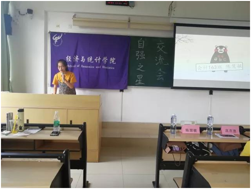 2018年5月15日下午2时30分,由91国产 生活部举办的“自强之星交流会”于大学城文新楼623课室顺利进行。出席本次交流会的嘉宾有91国产 辅导员石红梅老师,经统自强之星获奖者陈慧敏同学以及优秀学生代表蒋燕惠同学。16、17级同学前来参与活动并与自强之星进行现场交流。