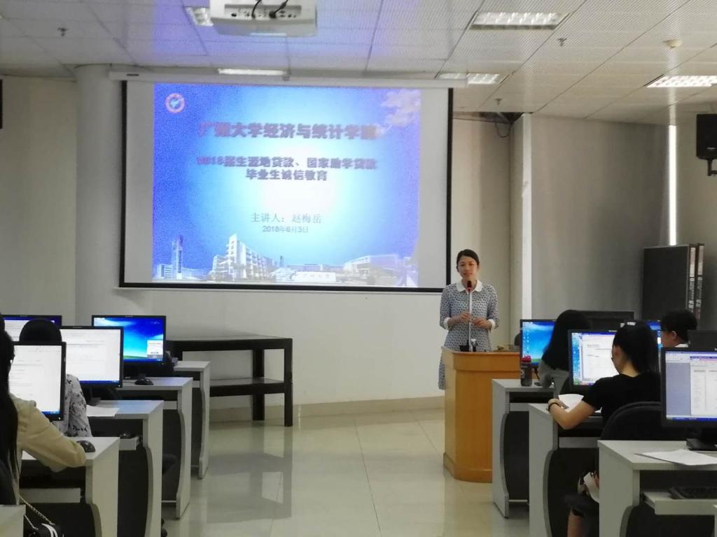 于6月3日下午在图书馆副楼301机房举行2018届贷款毕业生诚信教育会议,本次会议由学工办赵梅岳老师主持。