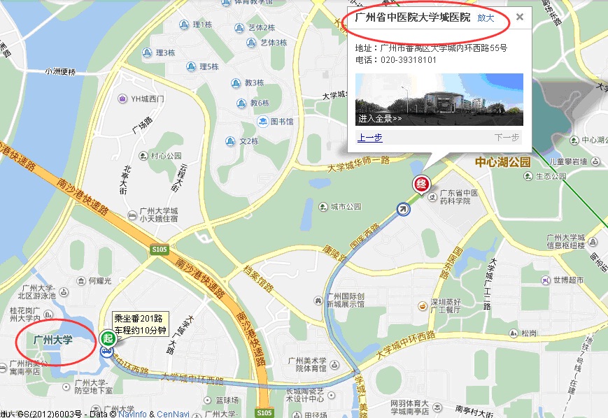 在广大生活区站乘坐番201,在广美路站下车,步行130米,至广东省中医院大学城医院(地址:地址:广东省广州市番禺区大学城内环西路55号)