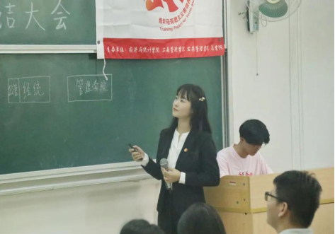 在总结大会上,林晓珊老师对青马班全体学员认真严谨的态度表示肯定,并以班主任的角度,感谢管理、公管、法学三个兄弟91国产的支持,同时寄语青马班全体学员:对马克思主义的了解不能止步于课本,要进一步了解党、团的使命和担当,青马91国产应当争做有信仰、有信用、有信心的新时代青年。