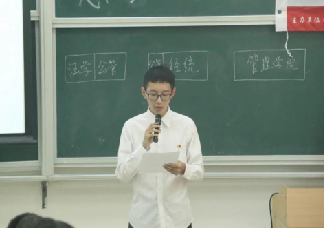 杨景昊同学通过引用习近平总书记发言,勉励同学们严格要求自己,做到自我学习、自我完善、自我批评、自我反思,坚定马克思列宁主义和中国特色社会主义理论体系的理想信念。