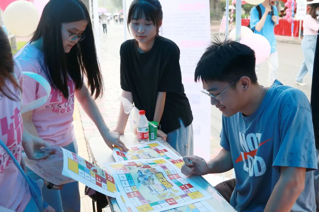 摊位设有游戏处与兑奖处,游戏以大富翁为主线,轻松有趣,极富体验感。兑奖处也有各种精美的小礼品等待着大家。