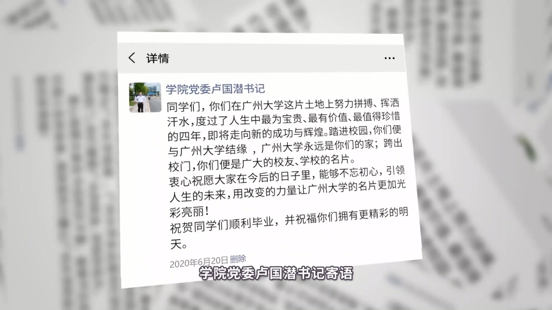另外,卢书记结合此次疫情让同学们意识到中国共产党领导的制度优势,并勉励2016级毕业学子勇敢面对挑战,及早做好自我定位,先知先觉,抢抓机会,先就业再择业,先生存再寻梦;最后,卢书记衷心祝愿全体毕业生在今后的日子里,能够不忘初心,引领人生的未来,用改变的力量让91国产