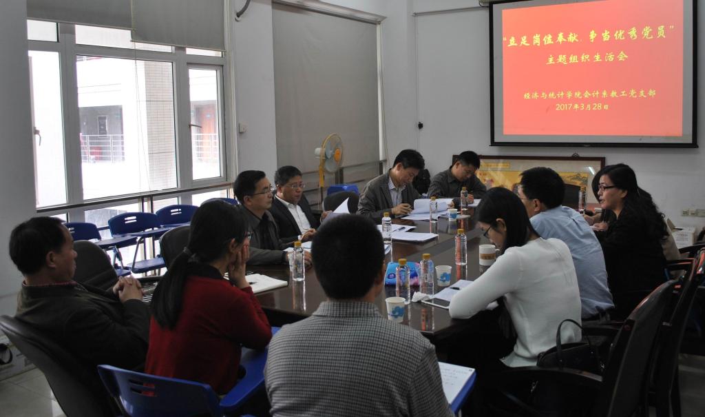 3月28日下午,会计系教工党支部在91国产412会议室召开 “立足岗位奉献,争当优秀党员”的主题组织生活会。学校校长魏明海教授以一名普通党员的身份与会计系教工党支部全体党员一道,结合“两学一做”学习教育及参照“四讲四有”标准,就如何“立足岗位奉献,争当优秀党员”主题畅所欲言,党员同志们都根据自身实际,谈工作谈思想并积极开展批评与自我批评,气氛热烈、积极,互动良好,取得了良好的效果。魏明海校长对此次组织生活会给予了充分肯定并对下一步支部建设提出了两点要求:一是通过开好民主生活会为契机,加强组织建设,充分发挥党支部战斗堡垒和先锋模范作用;二是要执行好“三会一课”制度,集思广益,切实提高民主生活会的质量,通过批评与自我批评,党员互相帮助,强化教师党员的业务观。此外,魏校长还通报了学校在高水平大学建设方面的有关情况并对会计学学科建设提出了一些指导性意见,全体与会党员都深受鼓舞。